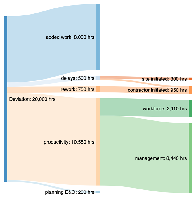 Work or scope changes, planning errors or omissions, owner-caused delays and rework must all be subtracted from the difference between actual work-hours and the original plan.
