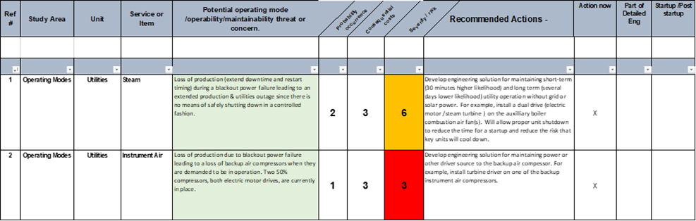 - Alignment on utility requirements to support all identified operating modes (including start-ups and shutdowns)