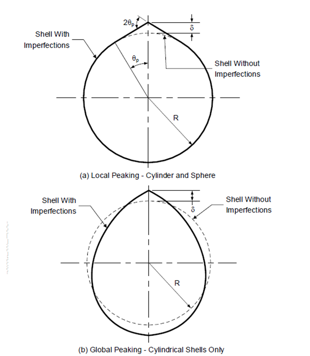 When measuring peaking manually using a template, the inspector has to make decisions regarding the shape of the deformation. For instance, API 579 offers two different ways of conducting calculations, depending on whether it is believed to be global or local peaking, as shown in Figure 4.