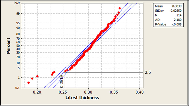 Figure 4: Probability Plot of Two Sets of Thickness Reading Five Years Apart
