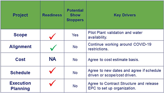 Becht executed a Project Cold Eyes Review evaluating Scope, Cost, Schedule, Project Execution Plan and Alignment with a High / Medium / Lower scorecard. Identified critical areas of focus to ensure project success based on practitioner review.