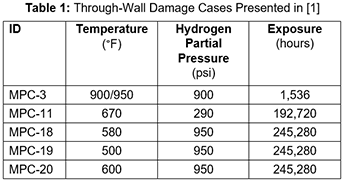 In Reference [1], Lui and co-workers characterize through-wall damage for five C-0.5Mo cases; four for ex-service material and one experimental case. The ex-service cases range from 22 to 29 years while the experiment represents about a 1500 hour exposure; the cases are summarized in Table 1.